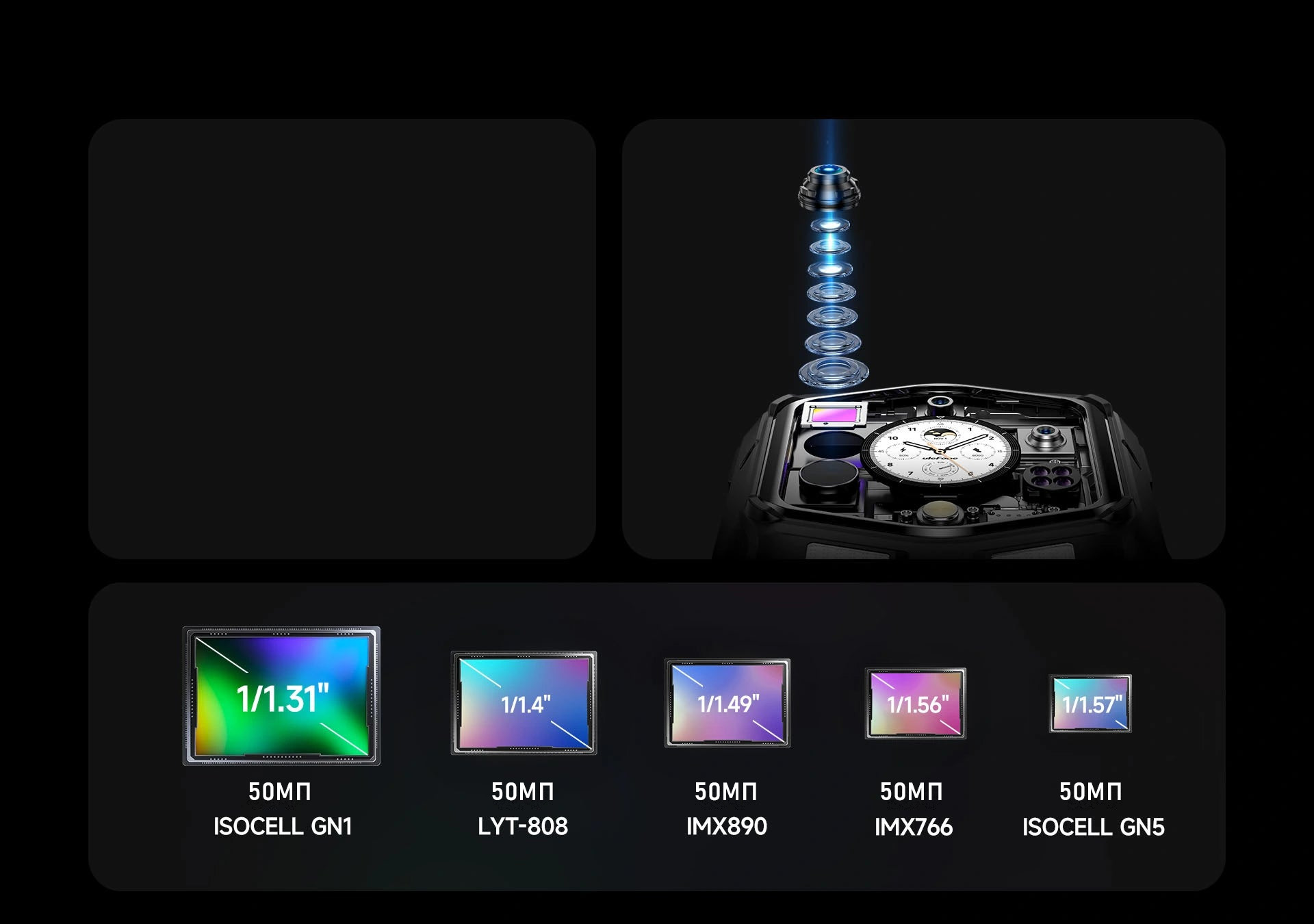 Сверхбольшой сенсор 50Мп основной камеры площадью 1/1.31" Samsung ISOCELL GN1 позволяет снимать при слабом освещении. Диафрагма ƒ/1.95 и размер пикселя в 1,2мкм обеспечивает на 40% больше света для более ярких и чётких кадров.